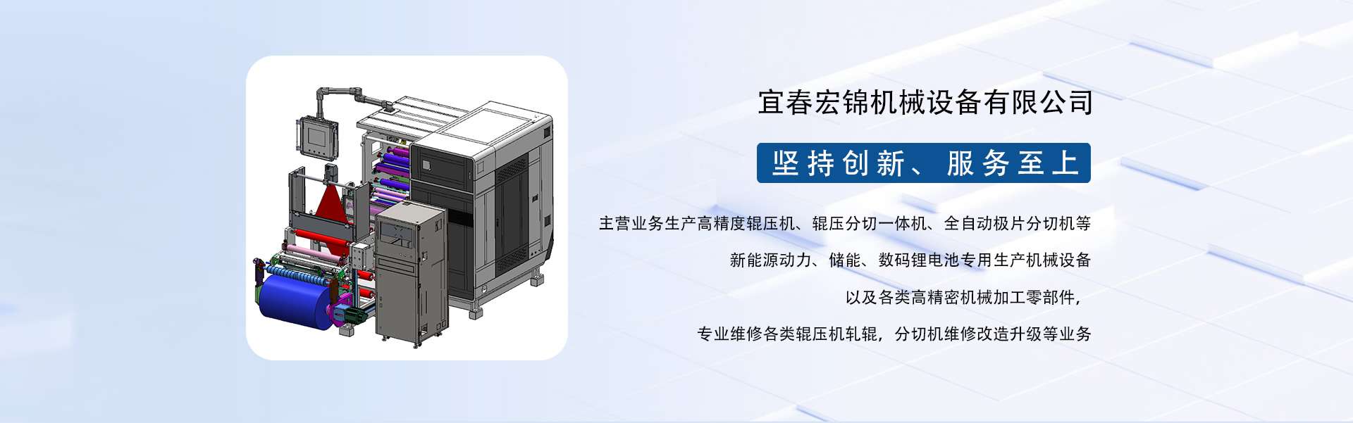 東莞市宏錦機(jī)械科技有限公司江西分公司是一家集研發(fā)、生產(chǎn)、銷售、服務(wù)于一體的創(chuàng)新型鋰電自動化精密機(jī)械設(shè)備專業(yè)制造、服務(wù)商,坐落于江西省新余市渝水區(qū)新余經(jīng)濟(jì)開發(fā)區(qū)孵化園5號廠房,廠房面積近6000平米,由東莞市宏錦機(jī)械科技有限公司于2024年11月投資新建,交通區(qū)位優(yōu)勢明顯、產(chǎn)業(yè)配套便捷集中,擁有一批具有行業(yè)豐富經(jīng)驗的技術(shù)人員和管理團(tuán)隊。公司主營業(yè)務(wù)生產(chǎn)高精度輥壓機(jī)、輥壓分切一體機(jī)、全自動極片分切機(jī)等新能源動力、儲能、數(shù)碼鋰電池專用生產(chǎn)機(jī)械設(shè)備以及各類高精密機(jī)械加工零部件,專業(yè)維修各類輥壓機(jī)軋輥,分切機(jī)維修改造升級等業(yè)務(wù)。根據(jù)公司發(fā)展三步走戰(zhàn)略規(guī)劃經(jīng)營現(xiàn)下設(shè)三個二級獨(dú)立運(yùn)營事業(yè)部分別為分切事業(yè)部(分切機(jī)、輥壓分切一體機(jī))、磨輥事業(yè)部(輥壓機(jī)、軋輥修磨)、機(jī)加事業(yè)部(精密機(jī)械部件加工)。經(jīng)過十余年沉淀發(fā)展主要客戶有新余贛鋒、南昌維科、宜春清陶、云南路華、河南恒一、江西程疆、四川天萊、蕪湖天弋、惠州億緯鋰能、無錫盤古新能源、鄭州比克、安徽鋰天下、臺灣長利(宏基集團(tuán))、重慶維都利(紫建電子)、贛州諾威、安徽利維能、漳州萬寶、重慶佳寶成、廣西皇冠儲能等一批具有行業(yè)知名度和影響力的企業(yè)。公司在新能源發(fā)展的道路上堅持創(chuàng)新,為客戶帶來穩(wěn)定、高效的自動化專用設(shè)備和更大的收益。